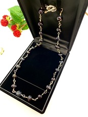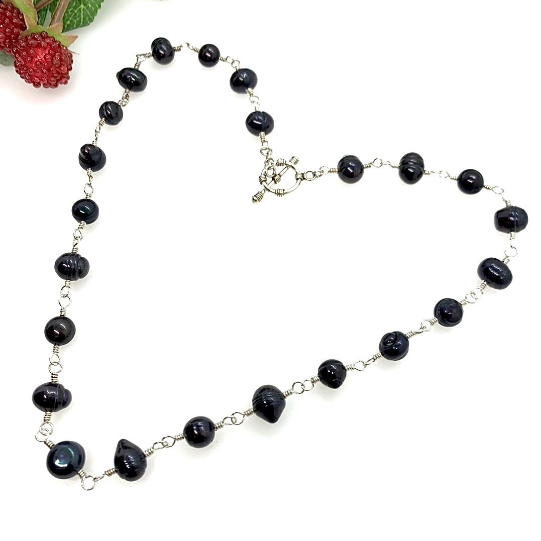 ヴァイキングのようなピーコックカラーを含んだブラックのカラーとウォーターウェーブパターンの強い大ぶりな淡水パールが、エネルギッシュなネックレスです。