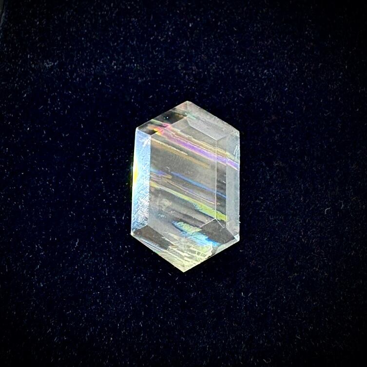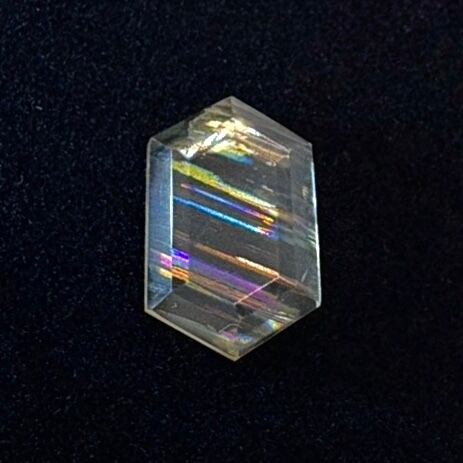 産出はかなり限定されている様子で、現在はマラウイ共和国のみとなっていて、もしかしたらピンクファイアークォーツのようなコレクションピースのみの流通で枯渇してしまいそうですね…このピースは透明感も高くサイズも大きめで、バランスの良いレインボーコードが正面から見える逸品です。