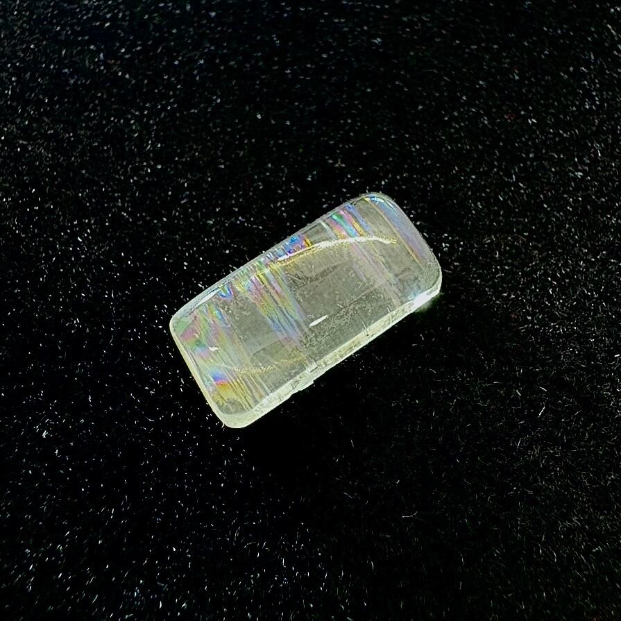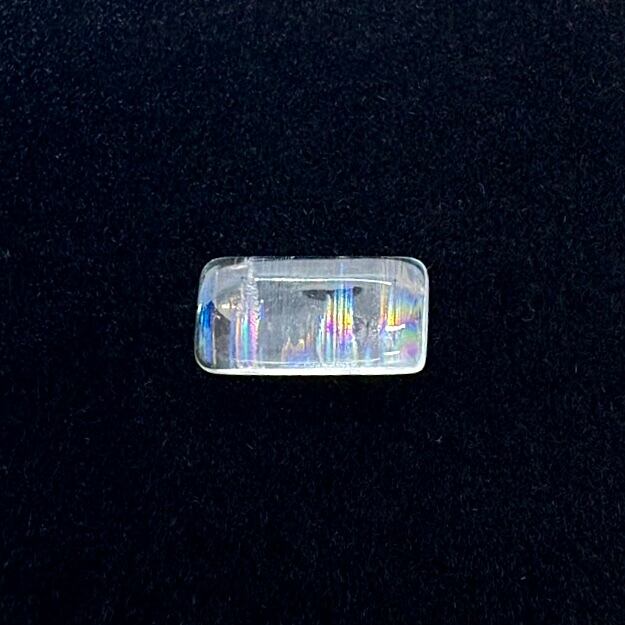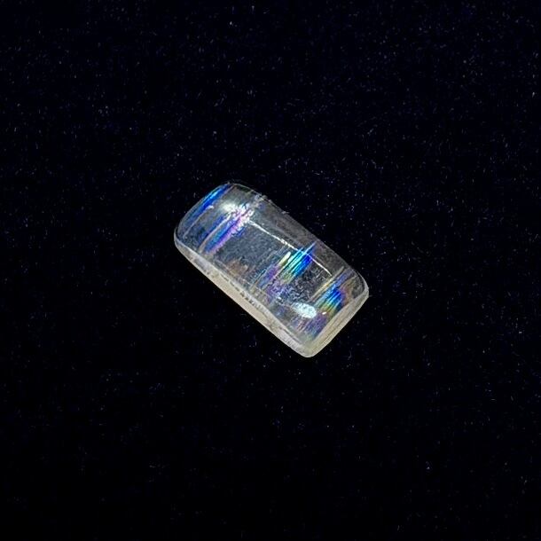 透明感の高いムーンストーンの内部に特徴的なレインボーレコードがしっかり表れている神秘的なピースで、ラブラドレッセンスの様な模様にも見えますが深さを持つと幾重にも虹のラインが浮かびとても美しさが際立ちます。