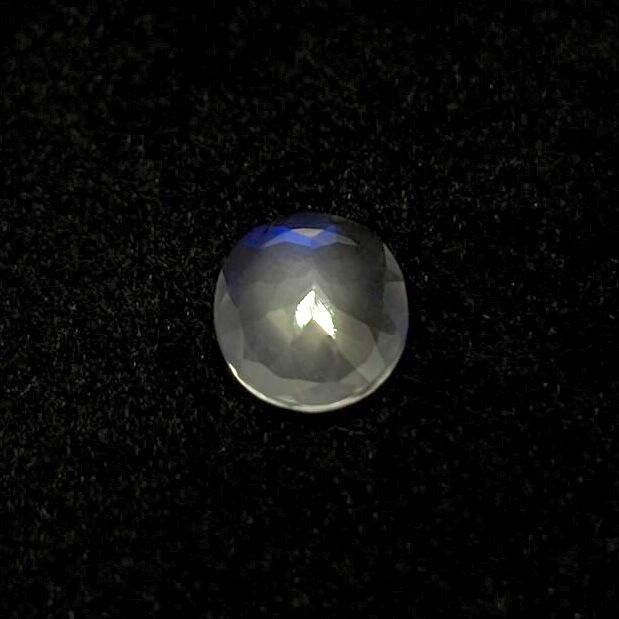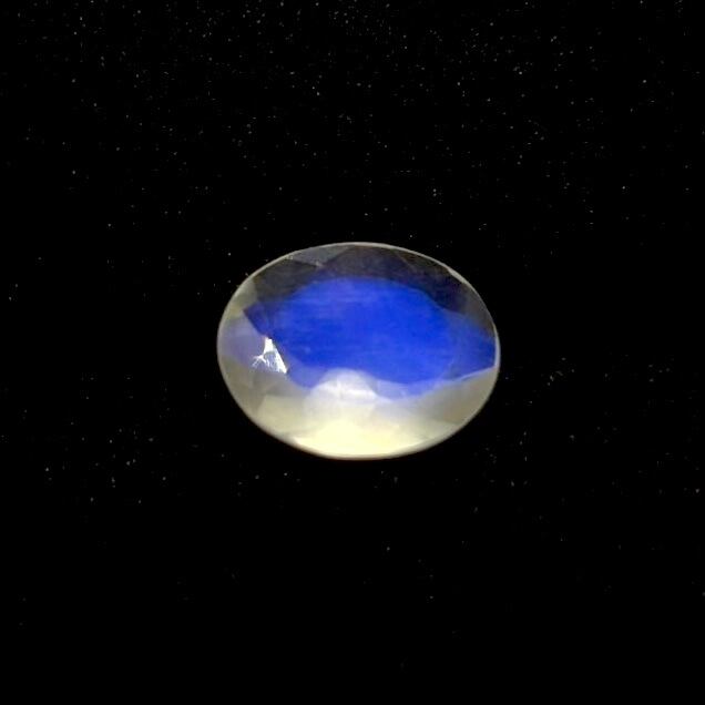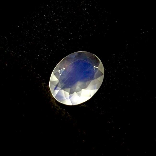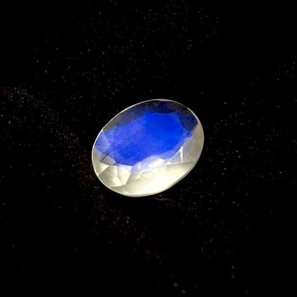 透明感が高く、ちょこっとシルキーなムーンストーンの内部に特徴的なロイヤルブルーシラーが表れている神秘的なピースです。
