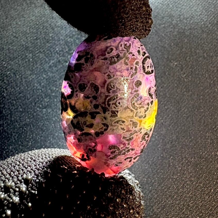 半透明の瑪瑙部分にアクアプラントの様な苔模様が入り癒しの天然石として利用されていますが、今回のルースはモス部分が細かくペイズリー柄の様な雰囲気で染色バランスも良く美しいルースとなっています。
