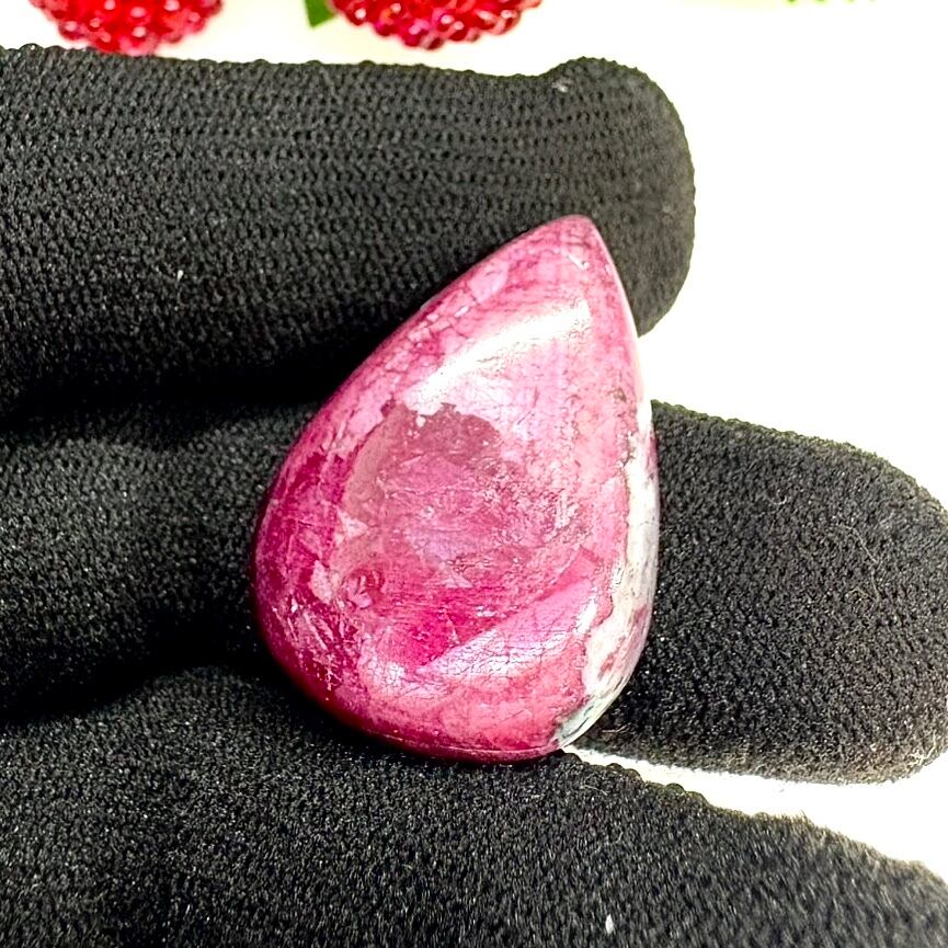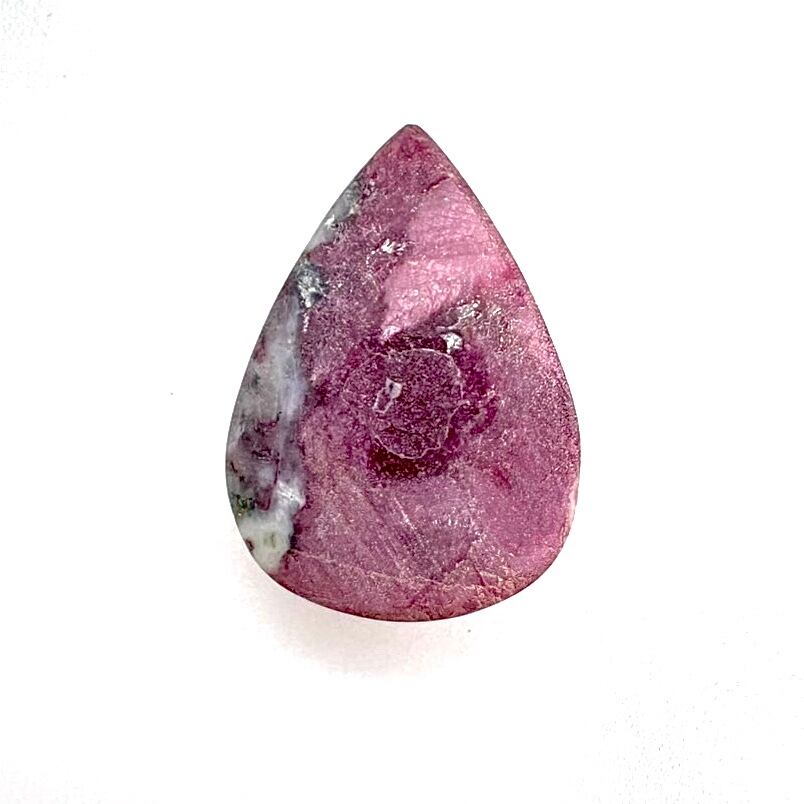 ルビーインゾイサイトというとグリーンのゾイサイトの中に赤いルビーが点々と入ったイメージが強いのですが、ルビー部分が大きい物もあるためゾイサイト部分が無くなるとこのようなルビーのみのルースとなります。