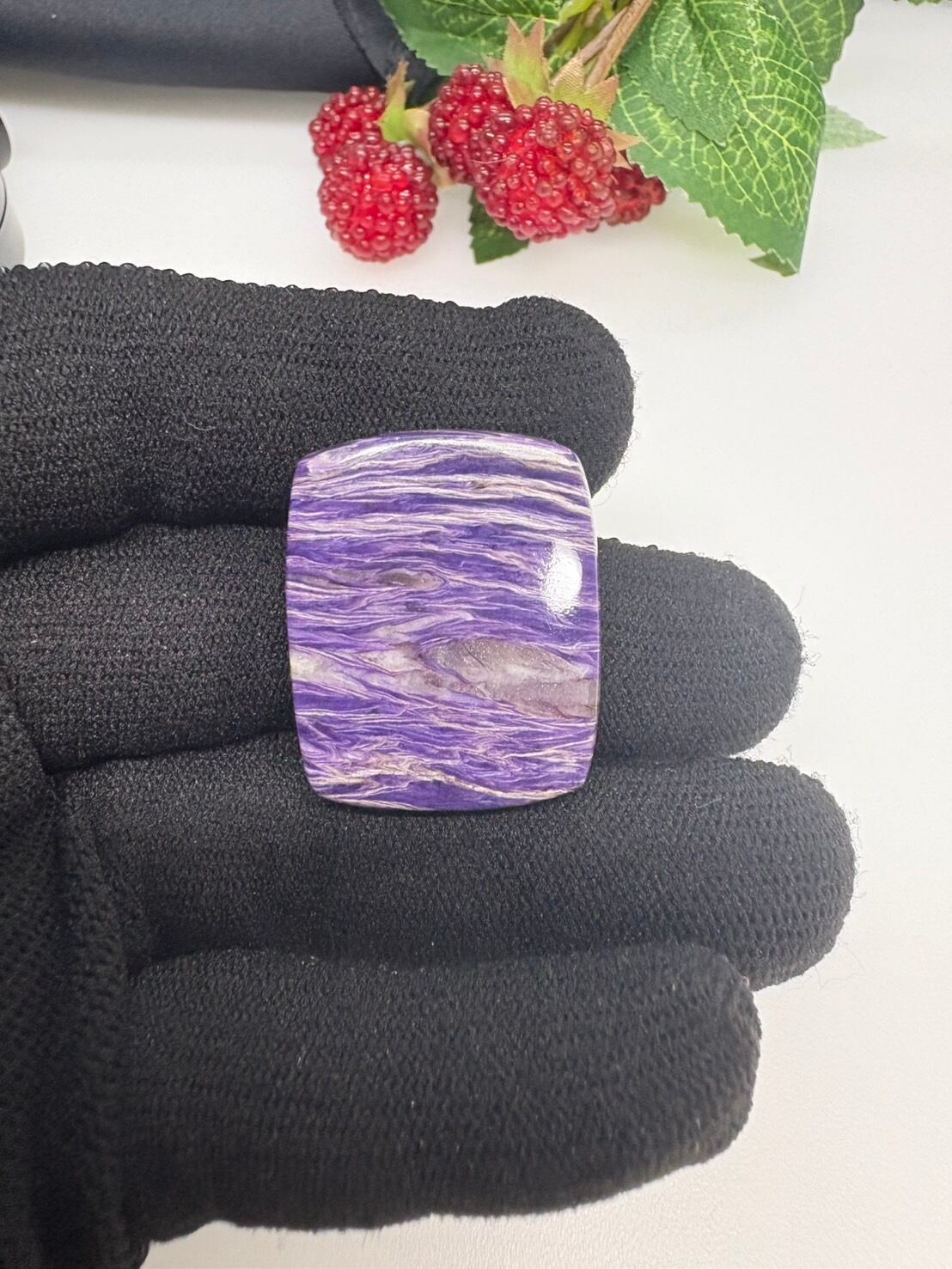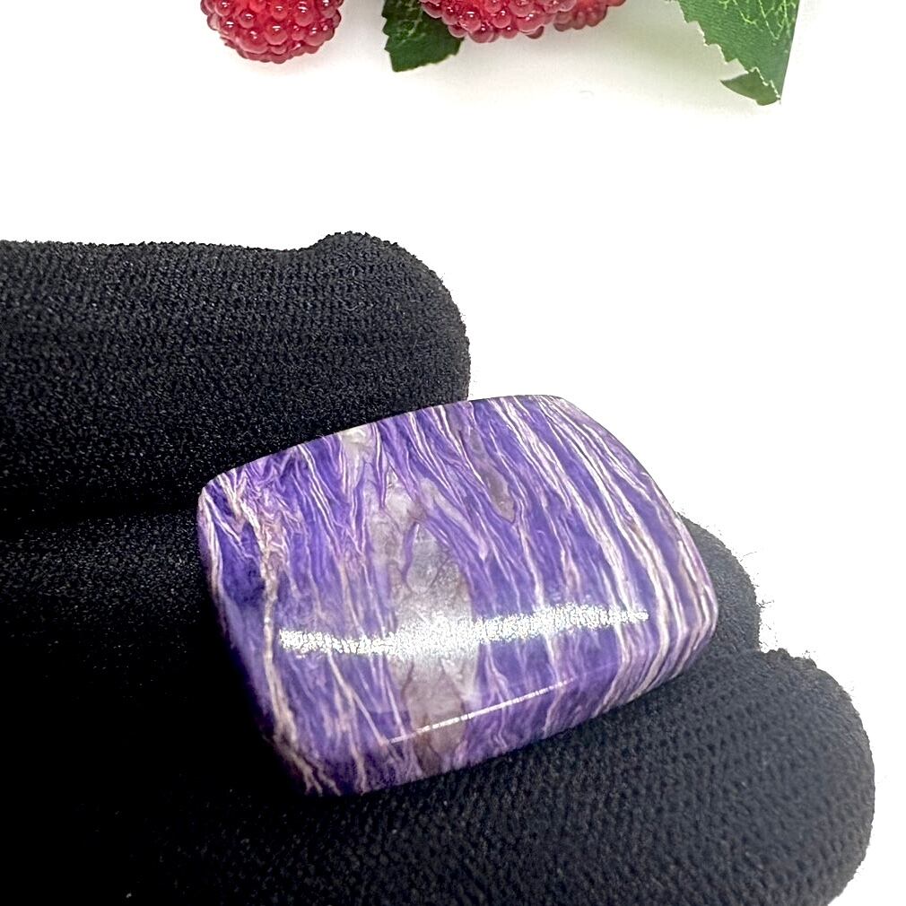 今回のピースは、シルキーなキラキラ感は少ないものの、パープルとホワイトが木目のようになっているミルフィーユパターンが個性的で、とてもレアかつ可愛いチャロアイトでおすすめです。