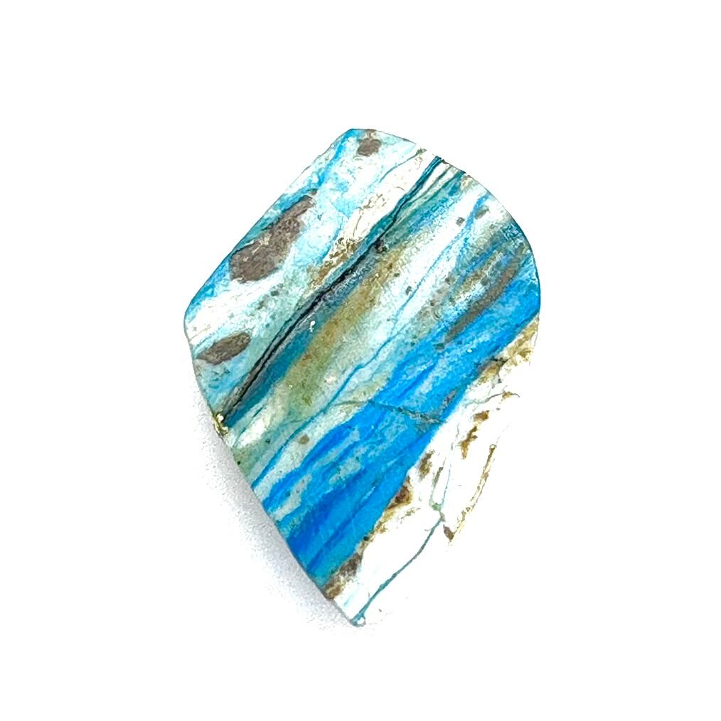 現在では少なくなってしまったタイプのブルーオパールで、カット時にはターコイズのように吸水する多孔質な感じです。