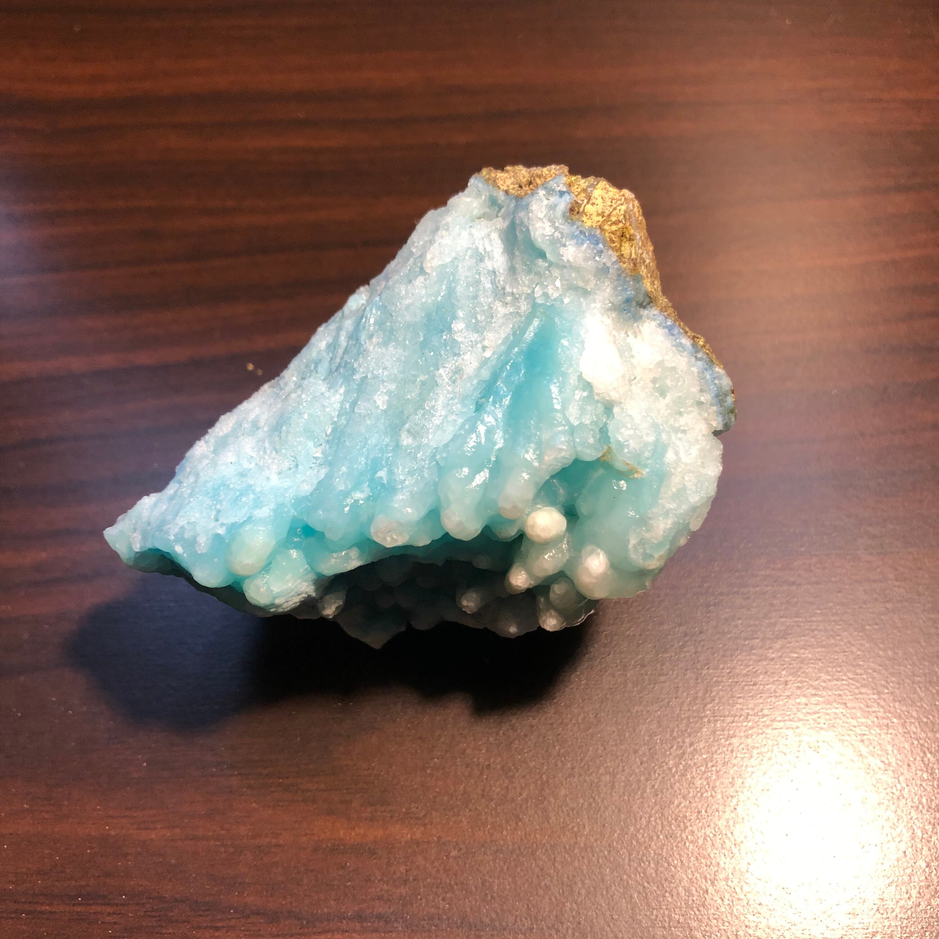 南極の氷壁の様な美しいアイスミントカラーが魅力的なヘミモルファイトの原石です。