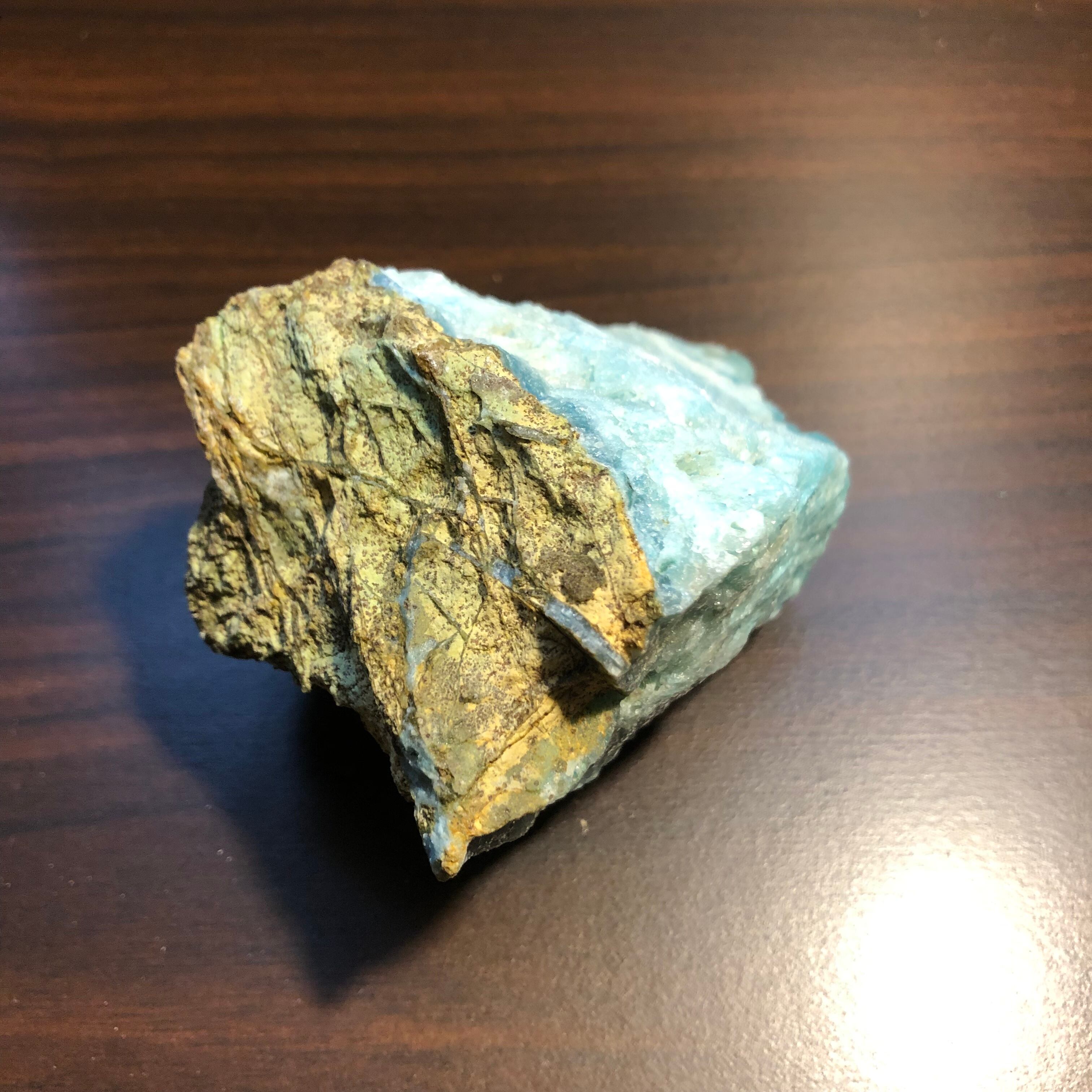 水色の部分をカットするとお砂糖菓子の様なルースになりますし、母岩部分をメインにカットすると、マトリックス入りターコイズの様な美しいルースになり、模様石が好きな人にはおすすめです。