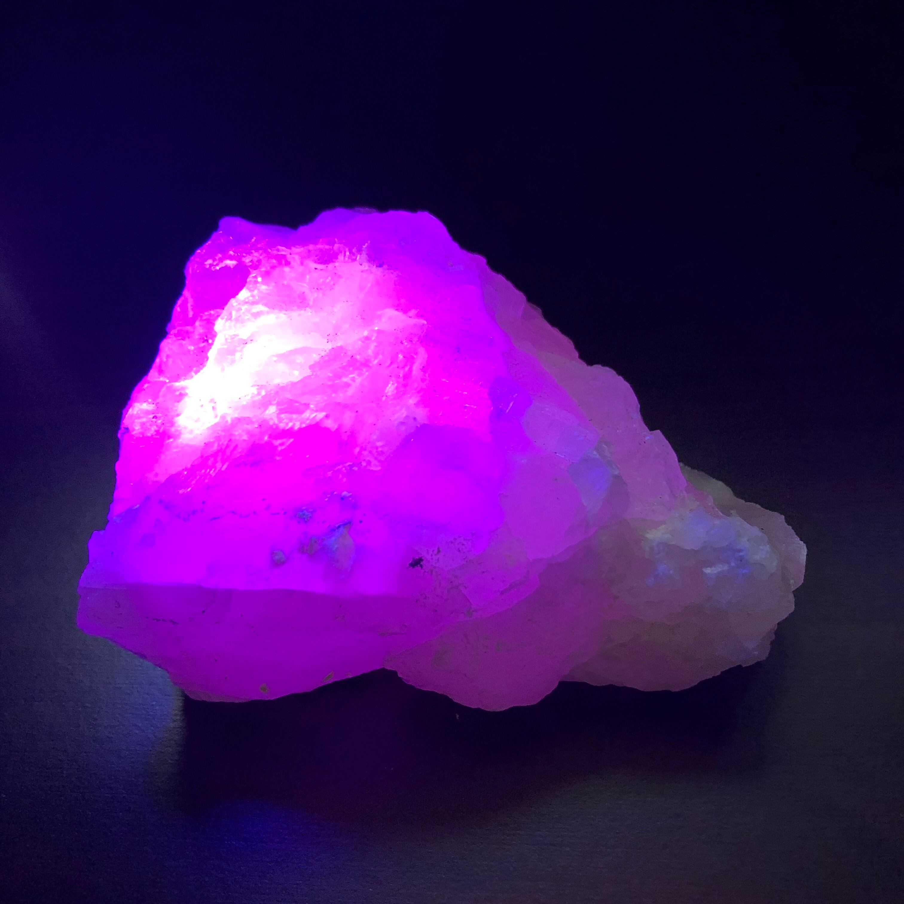 ルビーと同じく内部にマンガンを含む為、ブラックライトを照射すると強いピンク色に発光しますので、蛍光鉱物が好きな人にはおすすめです。