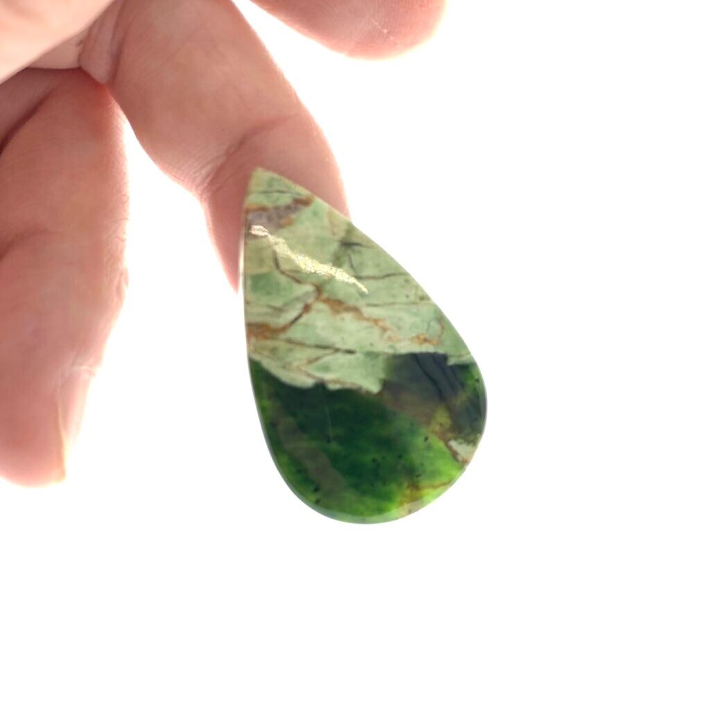 ディープグリーンの美しい部分と、母岩をそのまま磨き上げたアーティスティックなクロムカルセドニーです。
