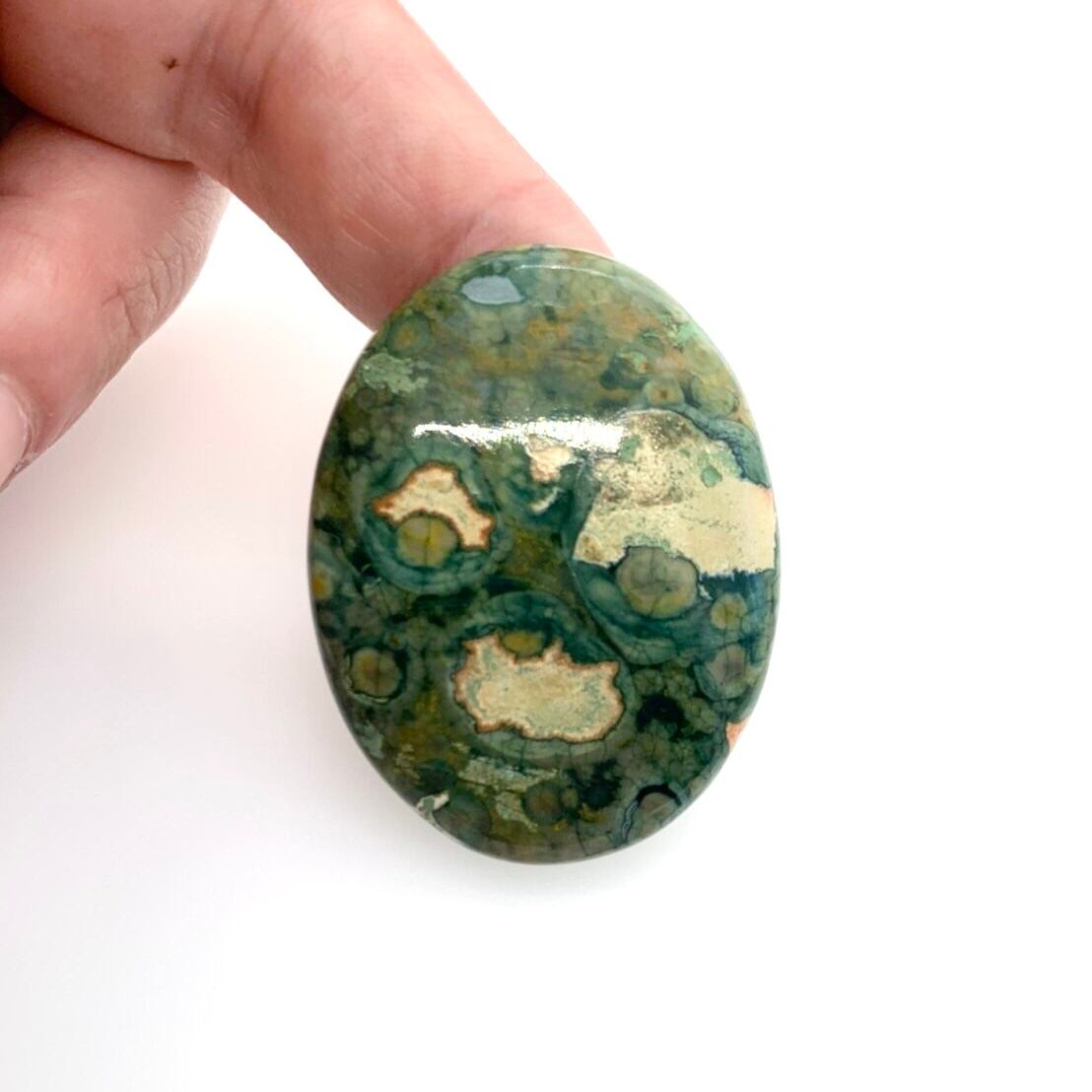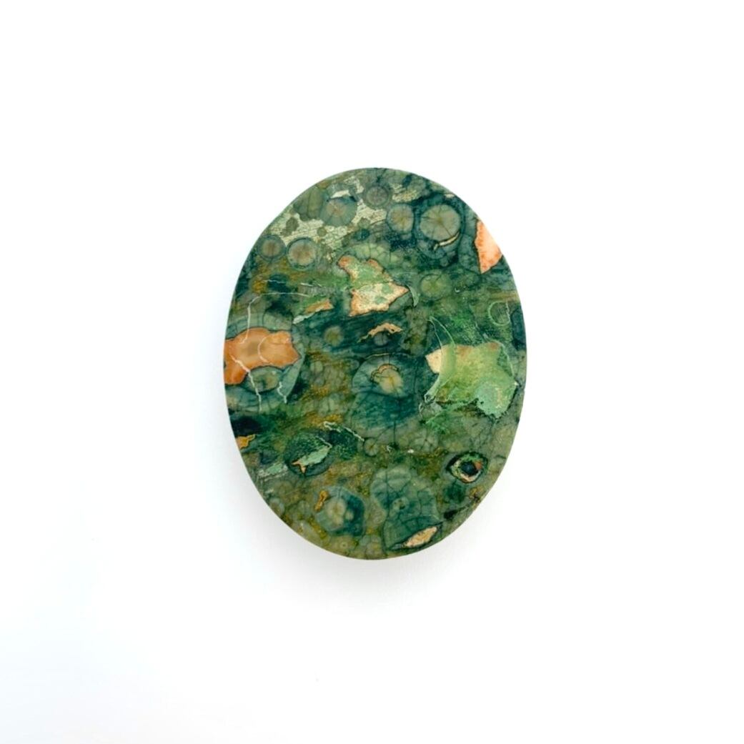 この天然石は、サーペンティン(流紋岩)の仲間らしく、独特で面白い模様を持っています。